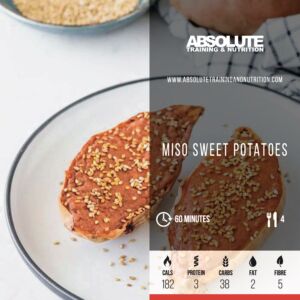 • Spread some of the miso mixture on the cut side of each sweet potato, then return to the oven to roast for another 10 minutes, or until the miso topping is nicely browned.